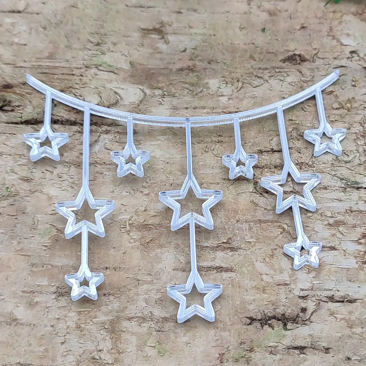 Dekoracyjna girlanda z gwiazdkami wykonana z pleksi lustrzanej to efektowny akcent dla wielu projektów scrapbookingowych. Subtelne, ażurowe gwiazdki zawieszone na delikatnych „sznureczkach” tworzą piękną kompozycję, która doskonale pasuje do prac dziecięcych, świątecznych, urodzinowych oraz fantastycznych.