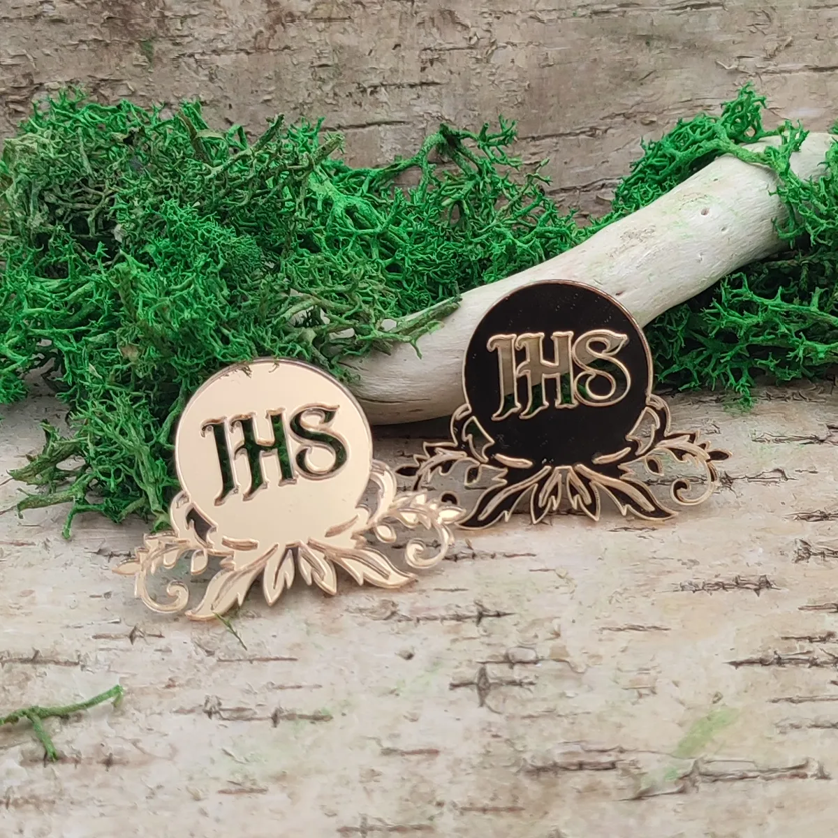 IHS z ornamentem 45x33 mm to elegancki detal do projektów sakramentalnych.
