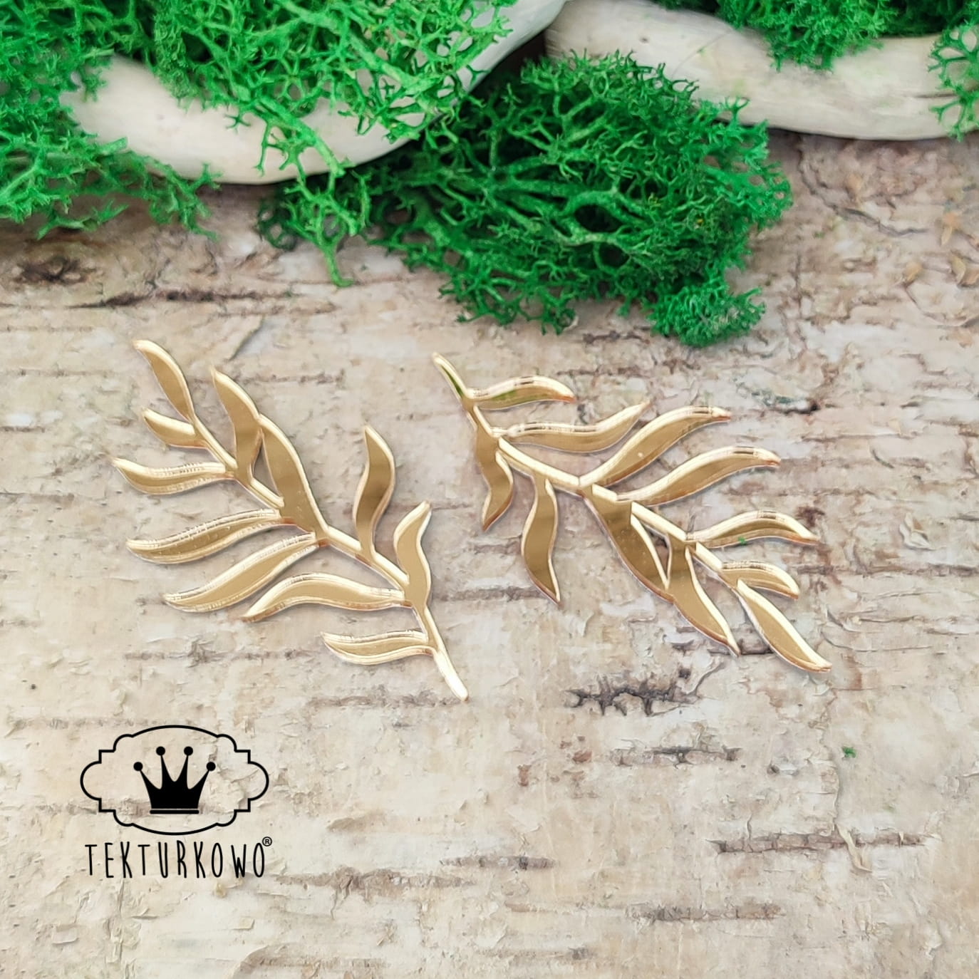 „Listki / Liście” – Pleksi Lustrzana (Złoto/Srebro), 52×40 mm, zestaw 2 szt.