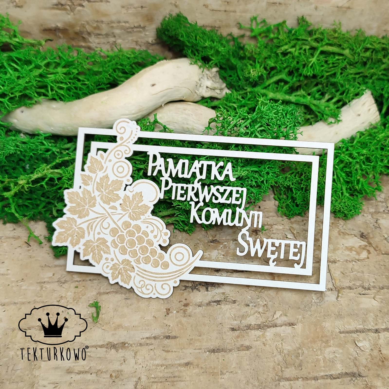 Tekturka - KOMUNIA, KWIATY, PAMIĄTKA PIERWSZEJ KOMUNII ŚWIĘTEJ, grawer