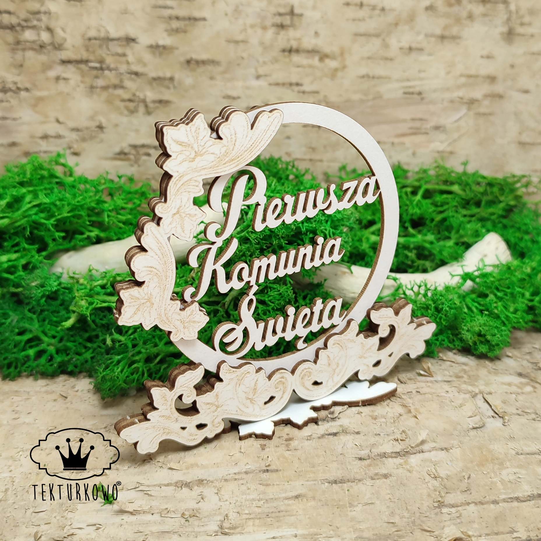 Tekturka - KOMUNIA, PIERWSZA KOMUNIA ŚWIĘTA, 3D, standbox, winorośl, dwustronny, grawer