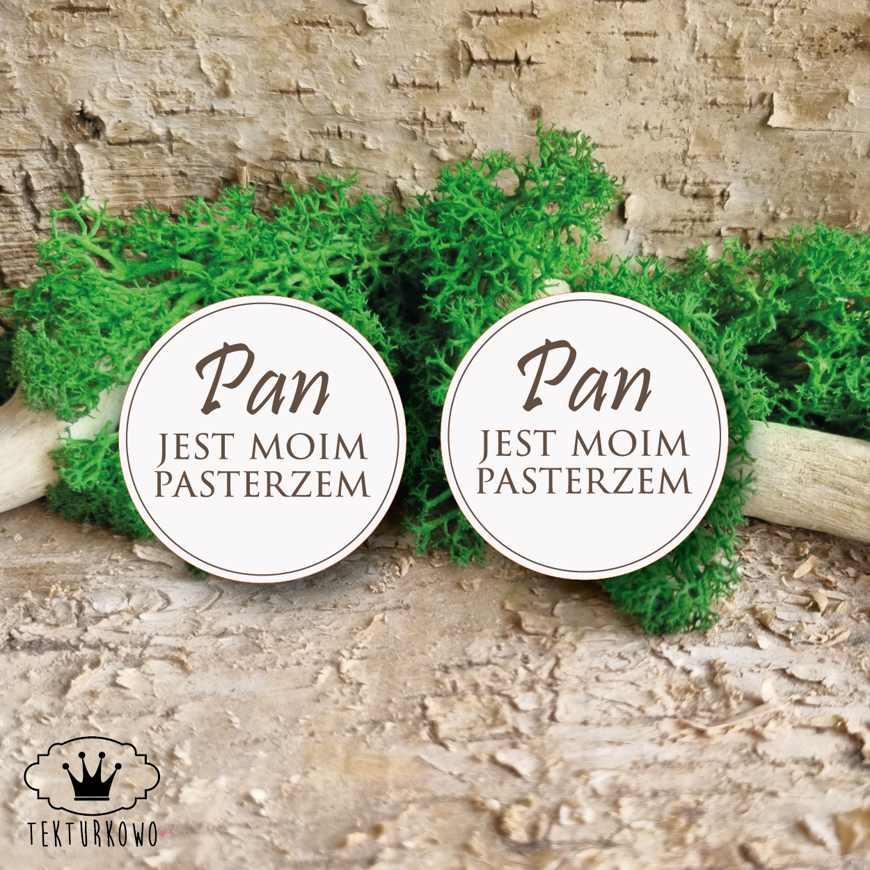 Tekturka napis- PAN JEST MOIM PASTERZEM, grawer w kole- 2 elementy